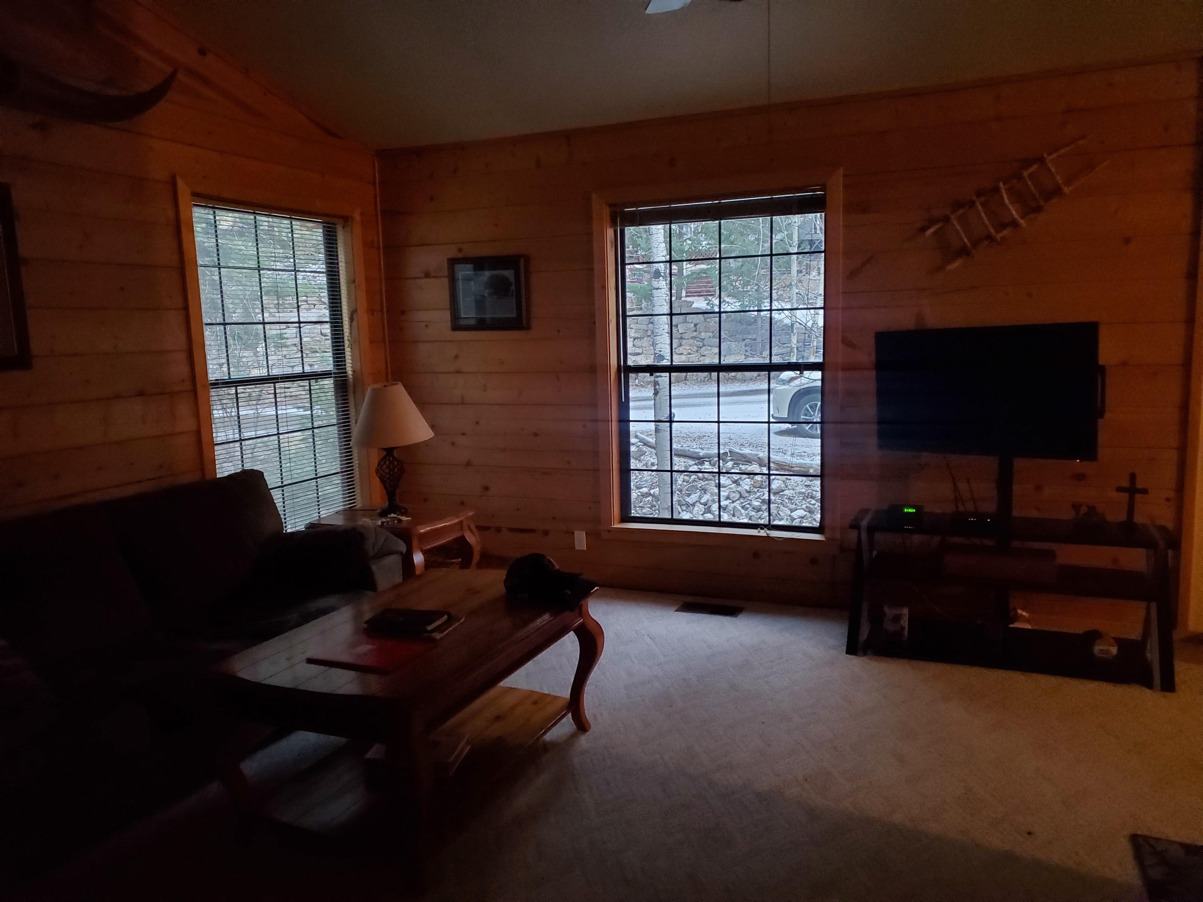 A beautiful log home available for rent in Cloudcroft. 3 bedroom, 2.5 baths, large living room with large rock fireplace, open kitchen/dining room, two story home, carpeted and tiled, central heating system. The master bedroom has a king size bed and en-suite bath. The lower level has one bedroom with a bunk bed with trundle. The other lower level bedroom has a full size bed. A second full bath is also on the lower level as well as a laundry room with washer/dryer. Access the covered back deck from the lower level. House does have a TV/VCR but does not have cable or satellite. Great vacation home for families.