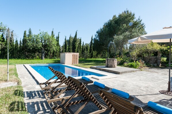 Villan har en stor trädgård med perfekta platser att koppla av borta från buller och folkmassor, där hittar du en pool med solstolar och en veranda full av skugga perfekt för att tillbringa varma kvällar. Det är verkligen en mycket privat och oberoende plats.