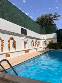 Ja, boendet har en säsongsöppen utomhuspool. Poolen är tillgänglig 10.00–21.00.