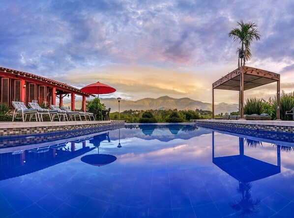 Hôtel très difficile à trouver car juste un panneau indicateur au début d'un chemin défoncé en terre. Souhaitant se restaurer rien avant 19h00 et petit déjeuner à 8h00 les propriétaires nous recommandent en espagnol car pas un mot d'englais un resto (très cher). En ce qui concerne l'hébergement bungalow sans eau potable ni frigo (ni frigo collectif). Les 2 frères et la domestique sans cesse et omniprésent nous incitent à manger et boire des bières dans des gobelets plastique déjà servi nous laissant penser que cet amical mais en fait chèrement facturés au départ cela jusque dans la piscine et frappant à la porte du bungalow . Pour le soir uniquement nourriture style fast food et très cher. J'ai fait un massage organisé et payé au proprio par une femme extérieure prestation moyenne et prix salé. En bref aucun service aux alentours à part l'aéroport et donc sans intérêt. Nous recommandons soit de se loger à Armenía centre ville et rien d'autre où à Salento.