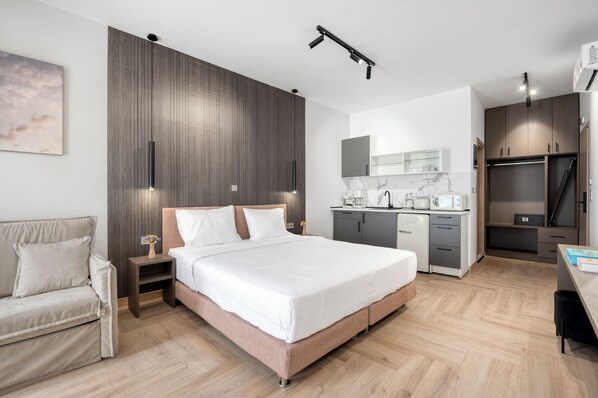 Samtliga gästrum hos Athenian Heart Suites har förmåner som laptopanpassade värdeförvaringsskåp och arbetsyta för laptop, samt extra bekvämligheter såsom gratis wi-fi och luftkonditionering.