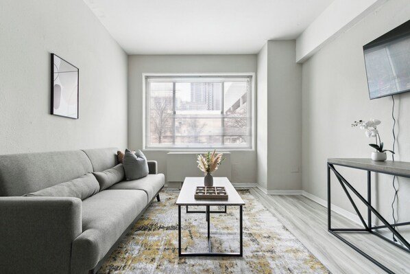 Discover the perfect 1 Bd 1 Bth apartment designed for modern living! This efficient, open-concept space offers a stylish layout with a spacious living area, sleek kitchen with stainless-steel appliances, and cozy sleeping nook. Enjoy features like ample storage, walk-in closets, and contemporary finishes throughout. With large windows providing natural light and sleek window coverings for privacy, this studio combines comfort, convenience, and style—ideal for busy lifestyles in the heart of the city.