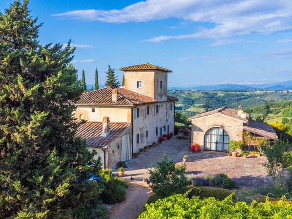 Tavarnelle Val di Pesa 25 km från Florenz: Mysigt, rustikt stuga "Cipereto", med 2 våningar, renoverat, omgiven av träd och ängar. 3 km från centrumet av Tavarnelle Val di Pesa, avskilt, soligt läge, i det gröna. För privat bruk: tomt (inhägnad), trädgård med planteringar och blommor, pool (3 x 6 m, tillgång säsongsbunden: 01.Apr. - 15.Nov.). Terrass, trädgårdsmöbler, utegrill, Underhållning av poolen av ägaren/trädgårdsmästaren. I huset: Trådlös LAN [WLAN], centralvärme, luftkonditionering, tvättmaskin. Parkering på tomten. Livsmedelsaffär 1 km, stormarknad 3 km, restaurang 1.5 km, bar 1 km, busshållplats 1.5 km, sandstrand "Cecina Mare" 90 km. Golfbana (18 hål) 25 km, tennis 2 km, ridstall 1 km, vandringsleder från huset 100 m. Närbelägna sevärdheter: Firenze 28 km, Greve in Chianti 16 km, San Gimignano 32 km, Siena 50 km. Notera: babyutrustning på förfrågan (inkl.). Tonårsgrupper endast på förfrågan. Ägaren bor på samma tomt. Ägaren har en hund.