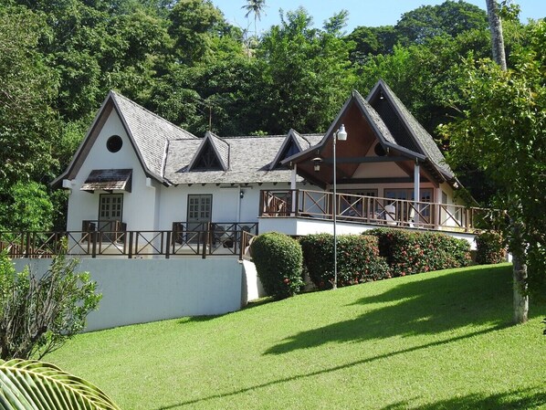 Coco Chalet ligger på den sydvästra delen av Tobago, nära Irvine Bays berömda 18-håls golfbana och inte långt från flera populära stränder. Högt i tak med trä accenter och stenmurar med tanke på ett mer tempererat klimat, ett "après-ski" skydd av olika slag. I denna väldigt olika miljö med gröna sluttningar fulla av fruktträd och ingen öppen spis i sikte, kan du inte låta bli att känna dig som "yuh reach" - äntligen anlänt i troperna.