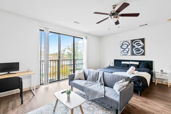 Enjoy complimentary high-speed Wi-Fi and smart TVs that support multi-streaming for your entertainment. If you forget your toiletries, we’ve got you covered with shampoo, conditioner, and body wash. The king-sized mattresses in the loft-style bedrooms offer unparalleled comfort, and easily accessible closets provide ample storage space.