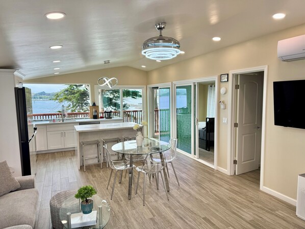 We love, love, loved everything about this place … from the moment you walk in, it gives “Welcome”.We were especially taken with the thoughtful design that went into creating the space. From the well-appointed kitchen with modern appliances, to the comfortable memory foam mattress, to the modern bathrooms with comfort showers, and heated toilet with a bidet, to (my favorite) the remote-controlled Della overhead wall space heaters located in each room. This cozy little spot is all about comfort and tasteful simplicity.There are restaurants conveniently scattered all around, and a general store, only about a stone’s throw away, is nicely appointed with all of the things, including a nice wine selection.We were fortunate enough to have nice weather, and took full advantage of sitting outside on the veranda, collecting memories. One of us, a bird watching enthusiast, was in her glory. Identifying all manor of species and sharing stories of their origins.This was a much needed opportunity for respite, at an amazing getaway, in a sweet little thoughtfully designed space above the bay. Thank you!________________