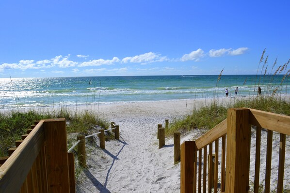 De utsikt över stranden är spektakulära från denna fastighet. Du kan promenera de vita sandstränderna för miles i endera riktningen. Andra bekvämligheter för att fullända din vistelse inkluderar: trådlöst höghastighetsinternet med utökad kabel och gratis rikssamtal, full storlek tvättmaskin och torktumlare, hiss, centraldammsugare, uppvärmd pool, övertäckt parkering för två bilar och en privat veranda med utsikt över stranden. Vardagsrummet har en 46 & quot; TV med DVD-spelare och videobandspelare. Det stora sovrummet har en 32 & quot; TV och de två gäst sovrum har 19 & quot; och 13 & quot; tv. Den idealiska Anna Maria Island semester börjar här på korthus.
