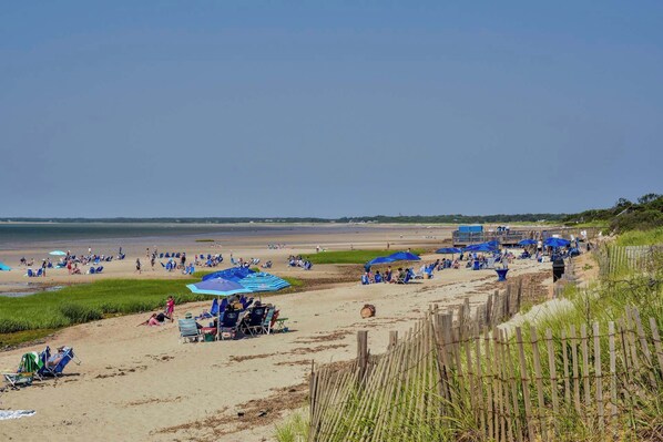 Welcome to Wave-y Days, a charming vacation retreat just steps from the shimmering shores of Ellis Landing Beach. Located in the heart of Brewster, this delightful home is a mere 400 feet from private beach access, where you can frolic in the gentle surf, explore the expansive tidal flats, and soak in spectacular sunsets over Cape Cod Bay.