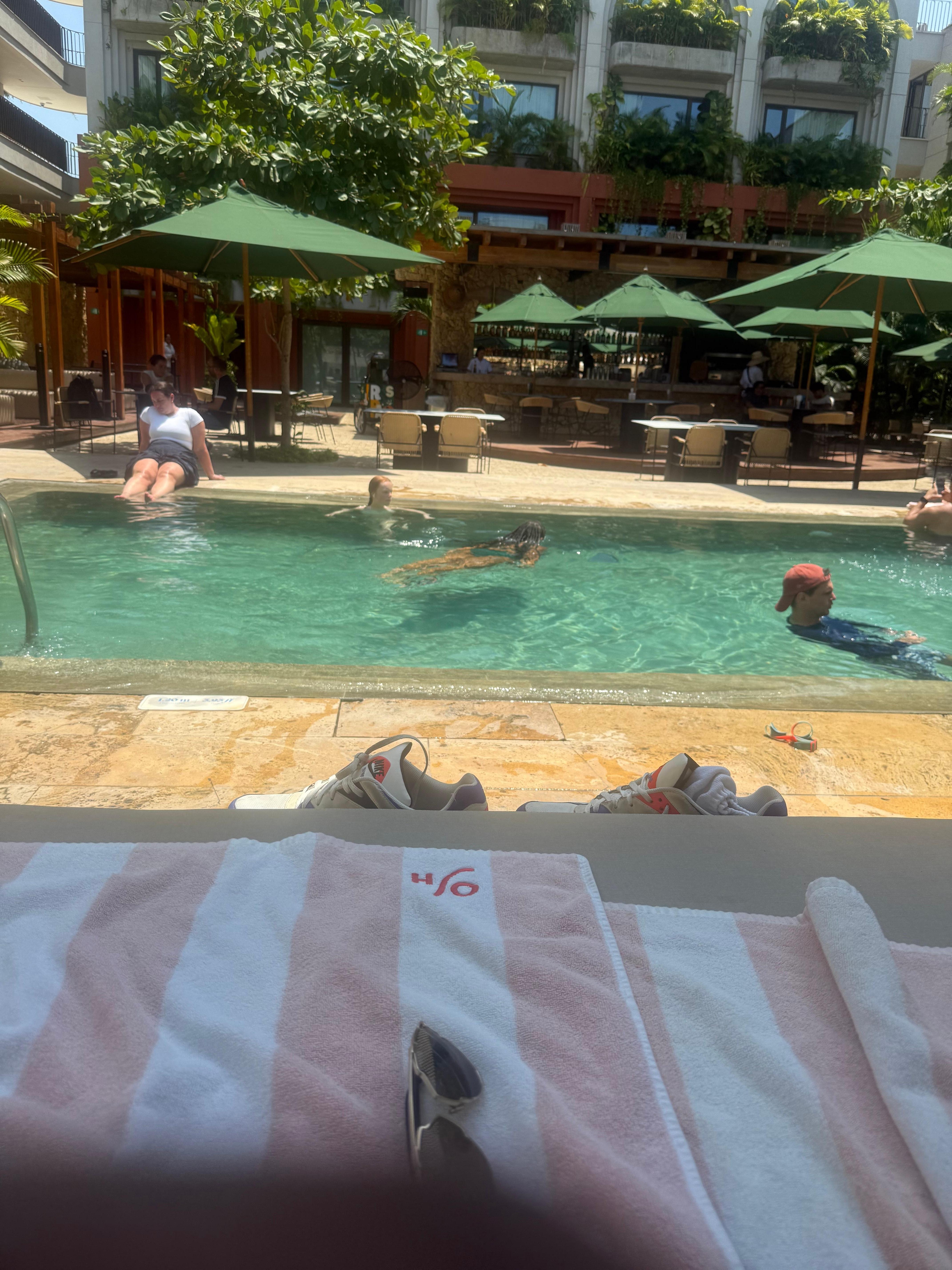 2 utomhuspooler samt gratis cabanor och parasoller