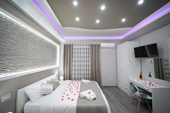 Exklusiv svit - 1 queensize-säng - balkong - utsikt mot staden