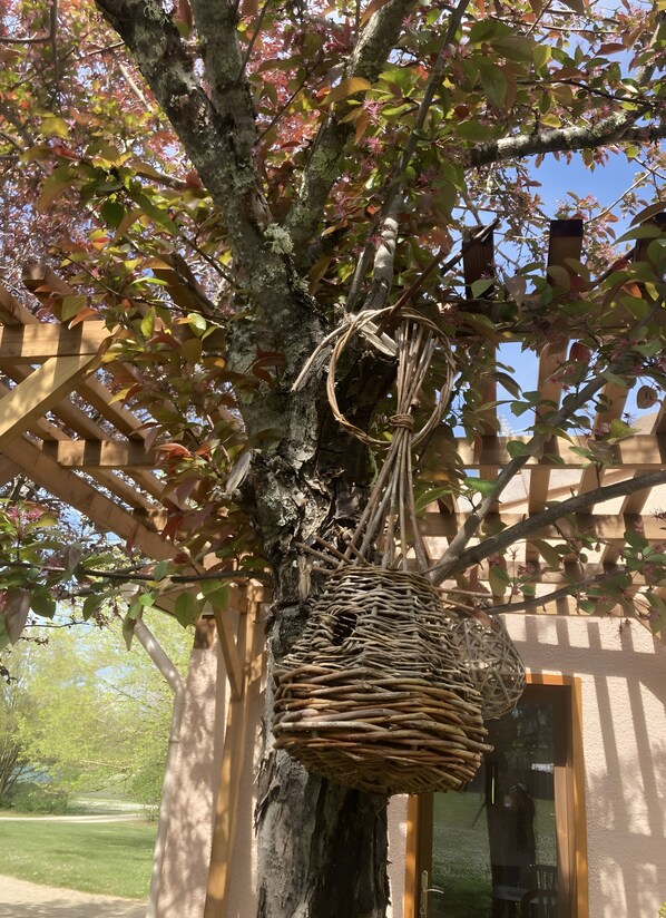 Corinne and Benoît welcome you to this charming 20 m² studio, fully equipped for your comfort. It features a cozy living area, a sleeping space, a kitchenette, a bathroom with WC, and a beautiful terrace overlooking a lush garden—perfect for relaxing in peace.