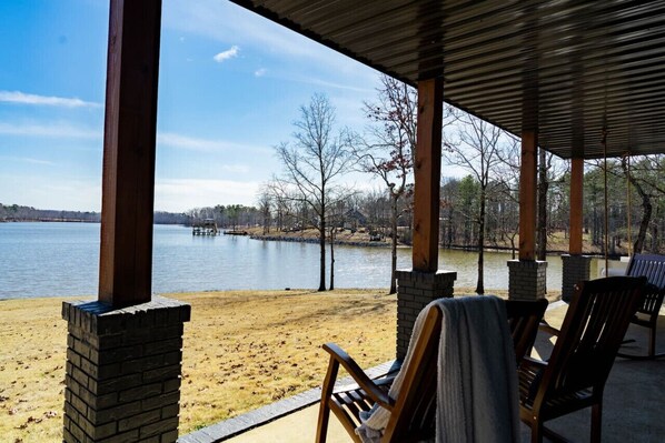 ⁃ Waterfront porch that offers a serene setting to sip your morning coffee, enjoy the sunrise, and reflect on the previous day's experiences.