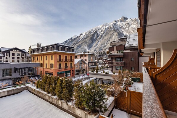 The apartment is centrally located, just a few steps away from the hustle and bustle of Chamonix, but also close to the ski slopes, just a one-minute walk from the Aiguille du Midi ski lift.