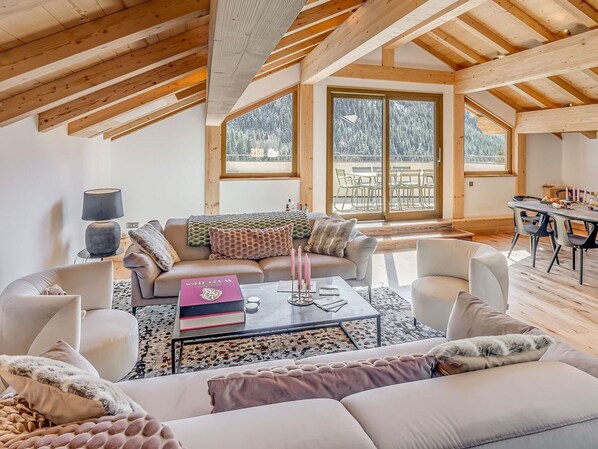 Chalet L'ETOILE d'ARGENT - Grand Paradis ***** Village house renovated in [hidden] m² - 5 Floors or Levels - 2 Balconies - Large SOUTH Terrace (50m²) 8 ROOMS - 5 bedrooms including 3 SUITES - sleeps 10. In the centre of the house, 1 indoor sauna with shower and bath. WIFI INTERNET by Fibre (high speed) available throughout the house. 2 outdoor parking spaces 50 metres from the chalet. CHAMPAGNY CASA range - Extra-hotel services included in the price of your stay. L'ETOILE d'ARGENT - "Grand Paradis" is composed as follows: LEVEL 0 - ENTRANCE LEVEL -1 Wooden ski locker located outside to the right of the skiers' entrance. - 1 Entrance / Skiers' entrance - for removing shoes, with wooden bench. - 1 Drying room for boots, ski boots, gloves, clothes, helmets. - 1 Suitcase cupboard under the stairs. - 1 vaulted room - children's playroom. - 1 Shower room with WC. - 1 Laundry room with washing machine, tumble dryer and washing sink. LEVEL 1 - Bedroom 1, facing SOUTH, with exit to balcony: 2 single continental beds (80x200) that can be converted into a double bed, smart TV, wardrobes. - Bedroom 2, MASTER SUITE accessible via private staircase, facing SOUTH and WEST, exit to private balcony. 2 single continental beds (90x200) that can be made into a double bed, smart TV, wardrobes, Bathroom with shower and jet bath, vanity unit, heated towel rail, private WC. - Bedroom 3, WEST facing. 2 single continental beds (80x200) that can be made into a double bed, smart TV, wardrobes. - Bathroom (shared by bedroom 1 and bedroom 3): 1 Italian-style shower with glass shower screen, vanity unit, towel warmer, WC. - In the centre of the house, elegant Sauna for 4 - 6 people Blue marble, cold water shower and bath available. The sauna is obscured by luminescent glazing. LEVEL 2 / 2 BIS - EAST ENTRANCE - 2nd exit door to the outside used as an entrance/exit to the village (no skiers entering through this door). This entrance provides direct access to floors 2BIS and 3 of the chalet. - Clearing room, storage cupboards, suitcase cupboard. - 1 Laundry room with washing machine and tumble dryer. - 1 Lounge - mezzanine for children to relax on - or reading area for adults, with Sofa (convertible into 2 children's beds if required), Smart TV with games console. LEVEL 3 - Bedroom 4, parents' SUITE, facing EAST. 2 single continental beds (90x200) convertible into a double bed, smart TV, wardrobes, Bathroom with shower, vanity unit, heated towel rail and private WC. - Bedroom 5, master bedroom suite, WEST facing. 2 single continental beds (90x200) that can be converted into a double bed, smart TV, wardrobes, Grey marble bathroom with bath, vanity unit, heated towel rail, private WC. LEVEL 4 LIVING ROOM - LOUNGE - OPEN KITCHEN and outdoor TERRACE, under the roof - high-definition indoor/outdoor sound system - Fully equipped kitchen: Including U-shaped worktop and bar unit, SNEG cooking hob, 2 ovens, 2 fridges with freezer compartment, 2 dishwashers, complete cooking, food preparation and serving equipment. - 1 Dining room with large wooden table and chairs for 10-12 guests. - 1 Lounge area with a set of sofas and armchairs, Smart TV and electric fireplace. - 1 outdoor terrace (40m²) facing EAST / SOUTH and WEST, with garden furniture, dining table, sound system and night lighting. - 2 private outdoor parking spaces, 50 metres from Chalet L'ETOILE d'ARGENT. CHAMPAGNY CASA range - Hotel services included in the price of your stay. - After welcoming you at our agency, we will take you to the Chalet L'ETOILE d'ARGENT and show you around the house. Use of interior rooms without shoes. - High-comfort mattresses, mattress toppers, pillows and bed linen for a perfect night's sleep. - Linen beds made up on arrival, bath sheets and towels included. - High-speed HD WIFI throughout the house. - Cleaning during your stay, change of sheets and towels on request (extra charge). Optional services to be paid on site and to be booked before your arrival: . Champagny baby bed : 20.0 € per stay . Champagny baby chair : 20.0 € per stay