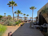 Ja, Domes Zeen Chania, a Luxury Collection Resort, Crete tillåter katter och hundar (högst 1 per rum) med en vikt på upp till 15 kg per djur. En städavgift på EUR 100 tas också ut. Vissa begränsningar kan gälla, så kontakta boendet för mer information.