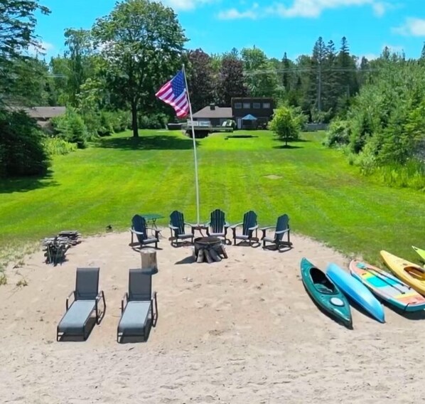 Lake Huron Beachfront near Mackinaw City: Kayaks, Hot Tub, Mackinaw Bridge Views