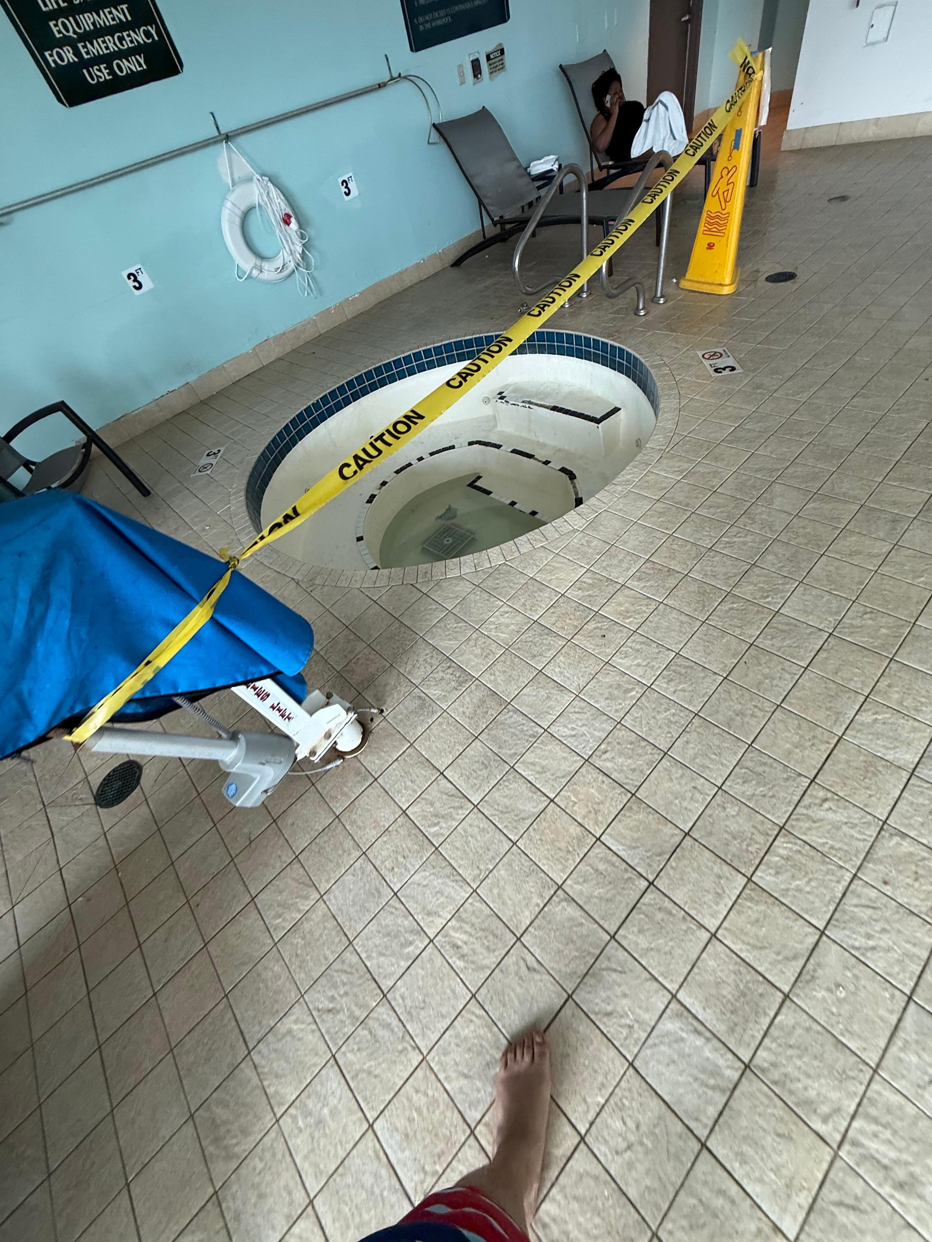The pool area was the biggest issue—it was dirty, cloudy, and in need of serious upkeep, with visible grime and missing tiles.