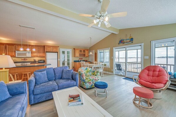 Inside, you’ll find a charming, beach-inspired interior that blends modern comforts with the peaceful ambiance of the water. Open, airy spaces make it easy to feel at home, while the large windows invite the beauty of the river right inside. ?️