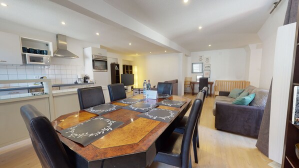 🍽️ an open equipped kitchen (fridge/freezer, hob, oven, dishwasher, microwave, filter coffee maker and Nespresso, kettle, toaster),