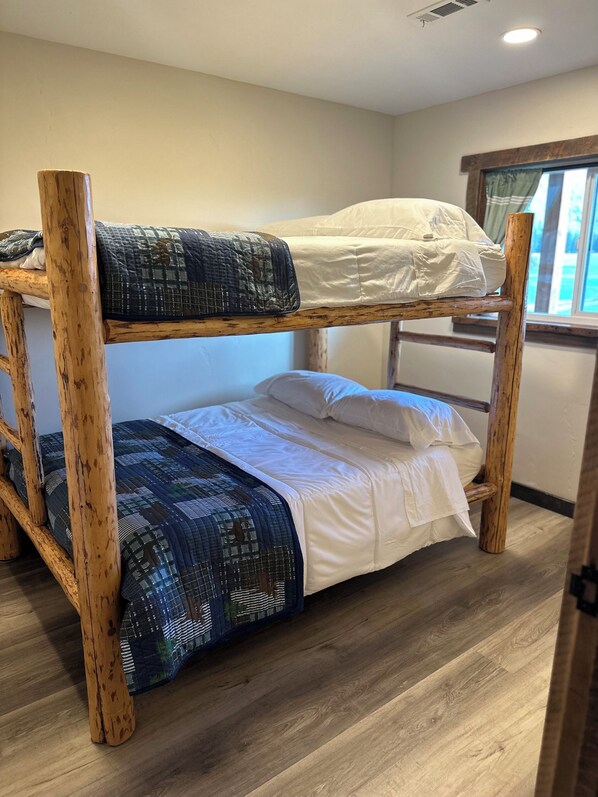 This 2 bedroom, 1 bath cabin is located at Columbia Mountain ranch, 20 minutes to Glacier National Park! The cabin is situated on a 30 acre property that includes access to 2 ponds and a year round creek. It boasts beautiful views of Columbia Mountain, fields, and various wildlife. The property is not only 20 minutes from Glacier National Park, but also the towns of Whitefish, Kalispell, and Big Fork . Inside is a kitchenette with fridge, convection microwave, sink, coffee maker. We provide dishes, cups, coffee, utensils (2026 glass dishes shown in photos will be replaced with disposable). There is a fully stocked pellet grill on the porch of the cabin. The full bathroom includes a relaxing shower with towels provided. One bedroom has a queen bed. The other bedroom has a full over full bunk. Blankets, pillows, and all linens are provided. Come enjoy your stay on our peaceful property, wander, fish in the pond, kayak, paddle board, corn hole, volleyball and make wonderful memories!