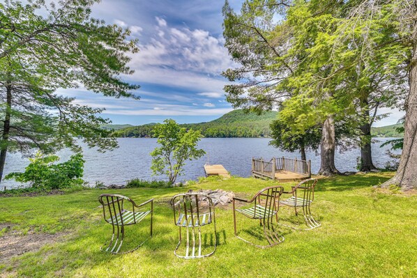 Lakefront Corinth Log Home: Private Dock, Fire Pit