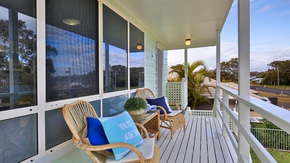 With room for up to six and a fully-fenced backyard, this bright, spacious beach house welcomes families and their pets to spread out. Relax on the wrap-around balcony with a glass of wine and a book, kick back on the couch under the air conditioning and enjoy Netflix, listen to some tunes or reconnect the family over a well-contested board game.