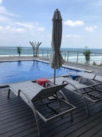 På stranden med utomhuspool, nära Puente del Dragón