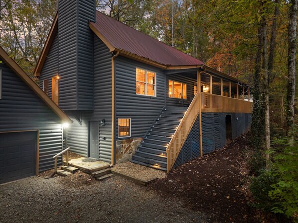Spacious Cabin RIGHT ON THE RIVER in Dahlonega I Hot Tub Sauna Fire Pit Game Rm