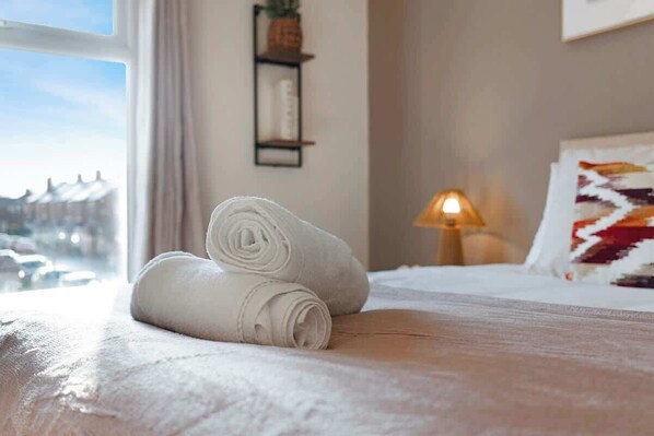 The kitchen is equipped with all the essentials needed to cook an array of meals whilst away in Darlington. There is an electric hob, oven, fridge, microwave.