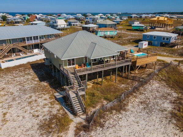 4 sovrum, 4 badrum - Detta vackra hem har utsikt över Mexikanska golfen - bara en minuts promenad från det rymliga däcket till stranden. Två master sviter med kungen sängar har utsikt över viken och har stora privata badrum. Sovrum 3 har en drottning säng och angränsande badrum. Sovrum 4 har två fulla sängar och eget badrum, och är idealisk för barnen! Vardagsrummet är ca 2150 kvm. Ft. Alla bad har granit toppar på fåfänglighet, klinkergolv i hela huset. Det välutrustade köket har alla bekvämligheter i ett hem, med rostfria vitvaror, granit bänkskivor, massor av skåp utrymme och ett stort skafferi. Det finns en bar i vardagsrummet med dryck svalare och vinkyl. Huset har designermöbler hela, tvättmaskin, torktumlare, diskmaskin, mikrovågsugn, kabel-TV i alla rum, DVD, trådlöst internet finns. Däck och verandor 700 + kvm. Ft. Täckt parkering under. Stor klyfta utsikt! Hemmet sover 8.