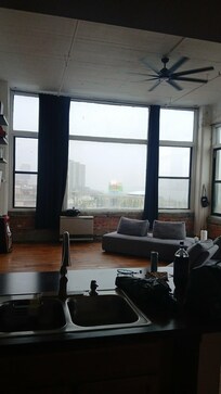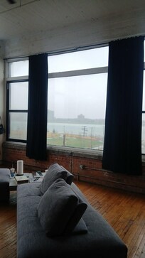 This place is so cool and unique. It has so much character and "Wabisabi". All kinds of sports, toys, and music memorabilia. I dont think you could get a cooler view if you tried, especially at this price point. Corner view of the detroit river, canada, the bridges. This is an old industrial building converted into loft apartments, theres no modern "perfection" but thats what makes it perfect to me. There is some wind noise at night. Loft is small but cute. Kitchen has pretty much everything. This is 3rd floor walk up, seems like a pretty quiet neighborhood at least when we stayed. We came here for a show at the filmore and it was only like 5 minutes away I would definitely stay here again.