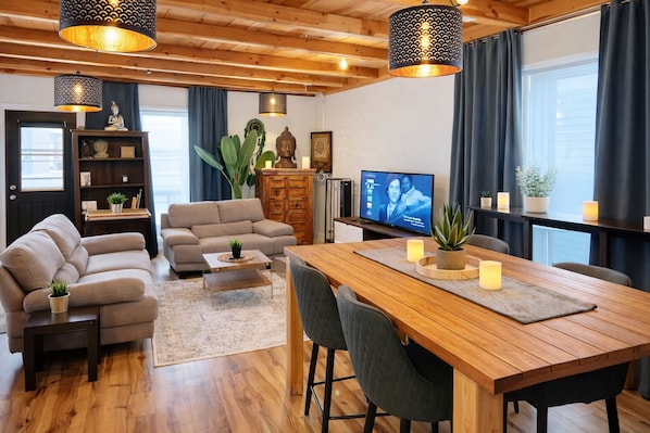 Découvrez un superbe loft au design raffiné, où chaque détail a été soigneusement pensé. Sa décoration unique, composée d’objets d’art provenant des quatre coins du monde, crée une atmosphère chaleureuse et dépaysante.
