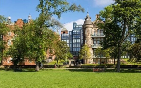 Modern Stylish 2BR Garden View ligger i Tollcross, ett område i Edinburgh. Edinburgh Castle och Grassmarket är viktiga sevärdheter, och för den som gillar att shoppa rekommenderas Princes Street och George Street. Gå på ett evenemang eller se en match på Murrayfield Stadium, och avsätt gärna lite tid för att besöka Edinburgh Zoo, en av områdets främsta turistattraktioner som du absolut inte får missa. Gå till vår reseguide för Edinburgh