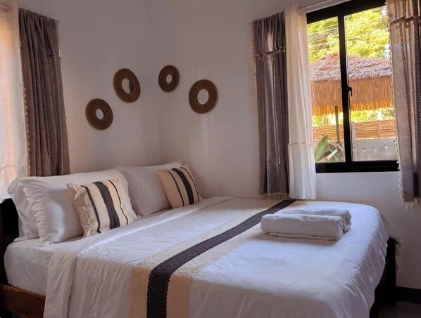 Alla rum hos • Liminaya Villa: Serene Boho Retreat in El Nido ståtar med detaljer som luftkonditionering, samt ytterligare bekvämligheter såsom gratis wi-fi och matbord.