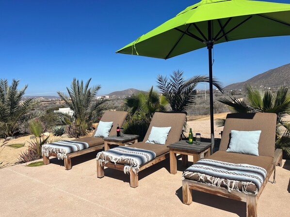 One of the best features of Casa Malibu is that you dont have to drive to the only swimmable beach as you would if you were in Pescadero or Todos Santos. The mile long washboard dusty road from the hiway and then the challenge of finding a parking spot is so nice to avoid. From Casa Malibu you can walk barefoot with boogie board or surfboard under arm.It is 100 steps to the beach and .5 mile to the beach with all the restaurants and people. I reccomend looking up Cerritos beach inn and that will give you an idea because Iam a stones throw from there.Another nice feature is at night this house feels like a Hollywood hills house but overlooking the lights of Cerritos. The deck with its lit pool and hot tub are fabulous for entertaining, watching the sunset over the ocean or the whales during the day. The lot is large and spacious. 1 acre of agave and cactus.On one side of the house is a massive Maracuya fruit vine.The star gazing from the observation deck is amazing. The outdoor hanging beds are blissful . The property is very serene with the sound of the waves very present.The courtyard with its argentine grill and cactus garden makes for another fun hang out space. The ocean views are from every room. We have boogie boards,skim boards and surfboards galore. There are four bedrooms, two with kings, one with a king and a set of bunks and one huge room upstairs with four twin beds.If you have more than 12 people , the outdoor hanging beds which are fulls , can be a place to sleep. Also, the living room couch can sleep two flexible people .There are 4 bathrooms.one upstairs with the new room.one bathroom is across the hall from one of the bedrooms which makes it convenient for anyone to use incase of a party.The other rooms have their own bathrooms.The pool heats to 80 with our solar system.No the house is not air-conditioned. Very breezy house. Its really not needed unless you are there in the off season months.We have exceptional wi-fi.There is a horseback riding outfit right across the street from us!