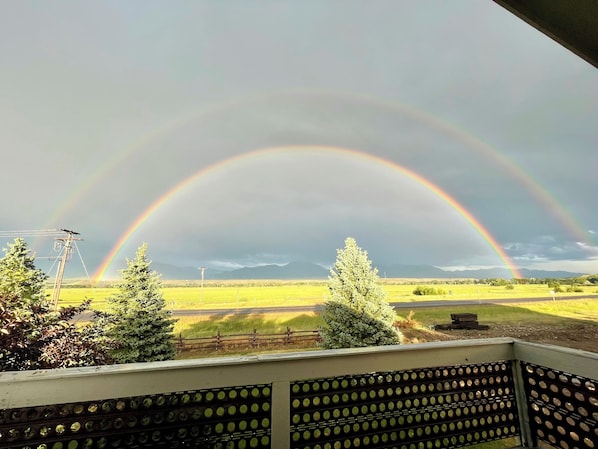 Mountain View Suite is a very comfy large guest suite with two queen size beds, mini refrigerator, microwave, and Keurig coffee system. The room has a split bath, microwave, refrigerator, electric fireplace, and a large balcony. The location is ideal with downtown Ennis being a 3 minute drive. You can walk to shopping, and dining if you choose. The views from the outdoors are killer. This place has everything you need to make your Madison Valley stay an enjoyable one.