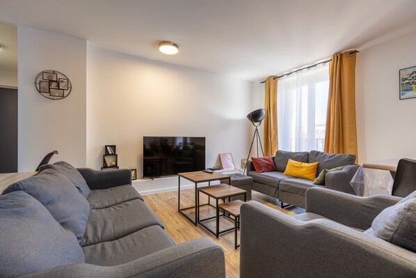 - A 42 m² living room with TV