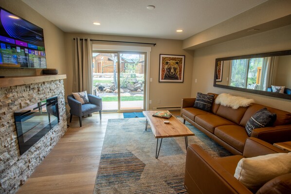 Unwind to the sights and sounds of the river as you enjoy morning coffee on the stream-side patio. Skip the hassle of parking and take a delightful 5 minute stroll along the popular Riverwalk path into town to enjoy shopping or dining. These charming 2 bedroom, 1.5 bath, 2-level condos have been fully remodeled in a tasteful, mountain-modern style and promise an unforgettable vacation for couples, friends, or families seeking relaxation and adventure amidst breathtaking mountain scenery.
