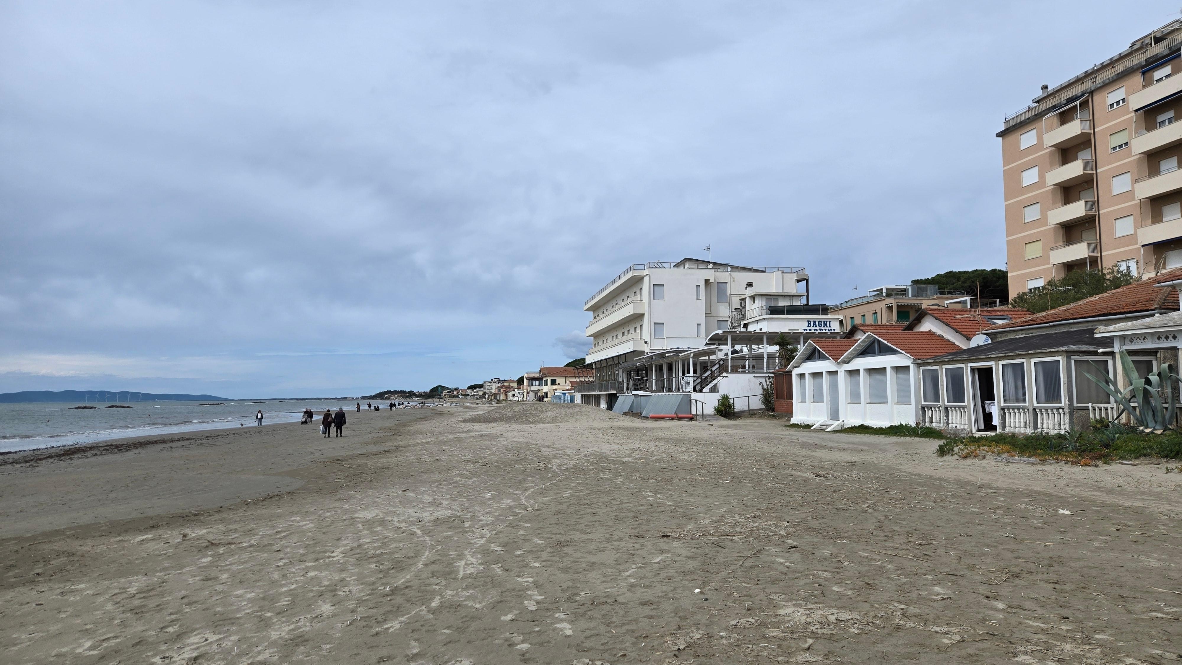 Detta mysiga stuga / villa på cirka 75m² ligger på sandstranden i utkanten av centrum av Follonica och är lätt att nå med bil. Till fots kan du nå gågatan och alla större anläggningar. Från strandpromenaden du gå ner några steg i 30m² stor, privat trädgård, som är helt inhägnad. Här kan du koppla av i skuggan av oleander träd eller äta bekvämt. Från trädgården du in i huset, som är uppdelat enligt följande: hall, från vilken du kan nå i ett sovrum med extra bäddsoffa, ett sovrum med två enkelsängar, badrummet och in i vardagsrummet dubbel. Från denna kommer du till en gästtoalett, kök och ett sovrum med dubbelsäng. Från vardagsrummet tar dig till altan (18 m²), har direkt tillgång från sandstranden. Från terrassen och stranden kan du njuta av fantastiska soluppgångar och solnedgångar.