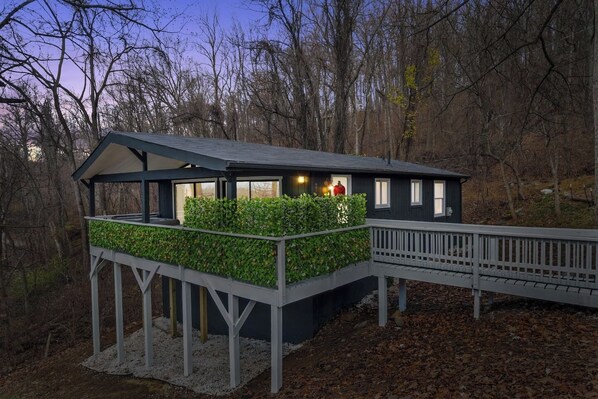 Escape to one of Front Royal`s hidden gems, `The Honeymoon Cabin` offers couples & more the opportunity to retreat and sit among the stars overlooking the community`s `Lake of Clouds`. Whether a romantic getaway, solo adventure, or gathering of friends, you`ll find relaxation among the stars over distance towns or the outline of mountains across the Shenandoah Valley.