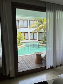 Ja, boendet har en utomhuspool och en barnpool. Poolen är tillgänglig 07.00–19.00.