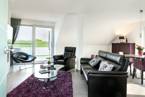Lyxig VILLA MON BIJOU / OG lägenhet: Uhindrad södra exponering, privat utomhus jacuzzi på den stora söderläge balkongen, bastu, 2 sovrum (+ HD TV), 2 badrum, SKY TV, Wi-Fi, gaspanna och WEBER grill Den familjevänliga lyxiga OG Semesterlägenhet i VILLA MON BIJOU med obegränsad utsikt från den stora söderläge balkongen med privat utomhusjacuzzi. Upplev wellness i lägenhetens egna spa (utomhus bubbelpool och bastu). Ett smakfullt och modernt utformat känsla-bra och välbefinnande utrustar garanterar oförglömliga och avkopplande semester i en lugn golfbana nära utkanten av Göhren-Lebbin. Låt dig bli förtrollad av charmen hos Villa Mon Bijou, som inte bara är en "drottningens sommarboende" och fördjupa dig i en avkopplande semester när som helst på året ... Ett extra smycke väntar på dig! Från den stora söderläge balkongen med egen utomhus bubbelpool (hela året varmt 38 �� C) njut av en fri utsikt över fält och ängar. Genom korridoren med en högkvalitativ naturstenmur når du en trappa i 1. Golv av huset. Efter att ha öppnat lägenhetsdörren går du in i lägenhets egen, rymliga hallplats med garderob och spegel av denna lägenhet i "Villa Mon Bijou". Efter att ha passerat genom lägenhetskorridoren öppnar den exklusiva och moderna utrustade vardagsrummet och matsalen med ett öppet och fullt utrustat designkök. Lutande tak, en högkvalitativ k��nsla-bra utrustning och mycket högkvalitativa målningar av olika artister ger denna lägenhet en speciell hygge. Denna rökfria & husdjursfria OG-lägenhet har golv av porslinstentillbehör av hög kvalitet (plattor) utrustade med golvvärme (kontrollerbar per rum). Så du kan också tillbringa den kalla årstiden mysiga semestern utan kalla fötter. En DSL Wi-Fi-åtkomst är gratis tillgänglig. Den stora och lätt översvämmade vardagsrummet och matsalen är möblerad i modern stil och har också en mycket högkvalitativ och modern känsla-bra utrustning med ett stort glasbord i Rolf-Benz, en bekväm svart lädersoffa, en högkvalitativ svart l��derfåtölj och en annan svart design -Leder stol. Däck är också tillgängliga. Underhållning tillhandahålls av en väggmonterad stor 50-tums Full HD-plattskärm (exkl. "SKY TV - Bundesliga, golfturneringar, Formel 1, nuvarande filmer i HD-kvalitet) kopplade till en soundbar och en BluRay-spelare. En riktig höjdpunkt i det h��r rummet är den exklusiva lyxiga gaspennan (styrbar via fjärrkontrollen) som en extra behaglig värmekälla för golvvärme. Brädspel för unga och gamla, böcker och DVD-skivor finns i högkvalitativa installationer i vardagsrummet. Matsalen med skåp, ett runt matbord och 4 bekväma stolar (barnstol valfritt bokningsbar) inbjuder dig till en get-together. Från vardagsrummet går du in genom en balkongdörr (insektsglidande dörr) den stora söderläge balkongen med privat utomhusjacuzzi och fri utsikt över stora fält och ��ngar. Den harmoniskt integrerad i vardagsrummet och matsalen öppet, fullt utrustat lyxkök med högkvalitativ utrustning (4-zon induktionshäll, konvektionsugn, mikrovågsugn, diskmaskin, kyl / frys, kaffebryggare, brödrost, vatten och äggkokare, högkvalitativt porslin, Leonardo-glas��gon, krukor, kokkärl och gott om användbara köksredskap) lämnar inget att önska och kommer verkligen att gl��dja till even amatörkockar. Dessutom finns en Nespresso-maskin (kapslar medföljer) finns tillgänglig. Plastbarns bestick och bestick finns också för yngre gäster. 2 separata känsla-bra sovrum har bekväma och mycket högkvalitativa vita l��dfjädrar (1 x 180 x 200 cm och 1 x 180 x 210 cm inkl. Sängkläder: kuddar och täcken / sängkläder finns som tillval) och spegel garderober, som ger gott om förvaringsutrymme för din semester garderob. Alla 2 sovrum har väggmonterade 40-tums Full HD-plattskärmar, mörkläggningsgardiner och insektsskärmar (förutom Velux), så dina drömmar kommer att vara långa och ostörda. �� De 2 dagsljusvattenbad med golvnivå, glaserade välvningsduschar ger en uppfriskande och avslappnad start till en vacker dag. I dagsljusvårdsbadet med egen bastu, golvnivå, glasskärmad Walk-In-Raindance dusch, designfack, handduksvärmare och toalett, upplever du wellness i sin renaste form. Bastunen har ett fönster så du kan se dig ut medan du har en bastu ... Det andra badrummet är badrum till 2: a Sovrum & har en våningsplan, glasväggad dusch. Båda badrummen på övervåningen är utrustade med en integrerad radio. Bastunbadet har också Bluetooth, så du kan bastu för din egen (avkoppling) musik. Ett förråd i lägenheten är utrustad med en torktumlare och en tvättmaskin (var god och ta med pulveret) och kan användas gratis. Torkställ, strykbräda, strykjärn, dammsugare, etc. finns också här. Den sydvendta balkongen med egen bubbelpool utomhus ligger på södra sidan av Villa Mon Bijou och lovar avkopplande solstimmar med fri drömutsikt. H��r kan du njuta av din frukost på morgonen på morgonen och koppla av p�� kvällen med en iskallad solnedgång på högkvalitativa trädgårdsmöbler.(Trädgårdsbord och 4 högkvalitativa stolar, 2 solstolar, paraply). Du kan laga utsökt grillad mat på den högkvalitativa WEBER-grillen. I lägenheten egen utomhusbubbelpool kan du koppla av vid en vattentemperatur på 38 ° C året runt, bubblande massageglädje från hydromassage jetmunstycken. Den integrerade i poolen, dimbar multi-LED lyser med växlande färger på kv��llen för en oförglömlig semester upplevelse under stjärnorna med fri utsikt över stora fält och ängar. 2 parkeringsplatser per lägenhet finns i huset. Husdjur är inte tillåtna i denna lägenhet. Denna vackra övre våningen lägenhet i Villa Mon Bijou kan bokas för 1-4 personer (5. Person i barnsäng möjlig).