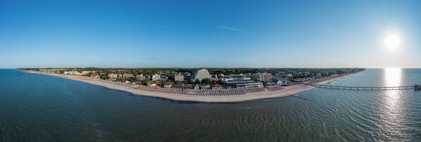Remek hely a tengerpart mellett, teljes koru wellnesz reszleggel, balkonokkal es remek szolgaltatasokkal. Gromitz remek hely lehet nyaron, biztosan meg fogjuk latogatni. Egy dologra kell figyelni: a szallason a takarotasi dij meg rakerul a vegso szamlara! Kutyakkal mentunk egy 31 nmes apartman szobaba, ahol fozolap, suto, huto is volt mind e konyhai eszkozzel, igy nem sajnaltam erte a kedvezo szezonon kivuli dij melle a takaritasi dijat. Hosszabb tavra foglalni igy nyilvan jobban megeri, es a hely fekvese miatt es a hotel szolgaltatasai miatt erdemes is!