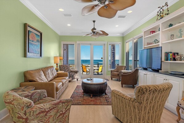 This lovely monstrosity is located directly on the gulf. It is perfect for those larger get togethers: plenty of space to be together but plenty of your own space too!