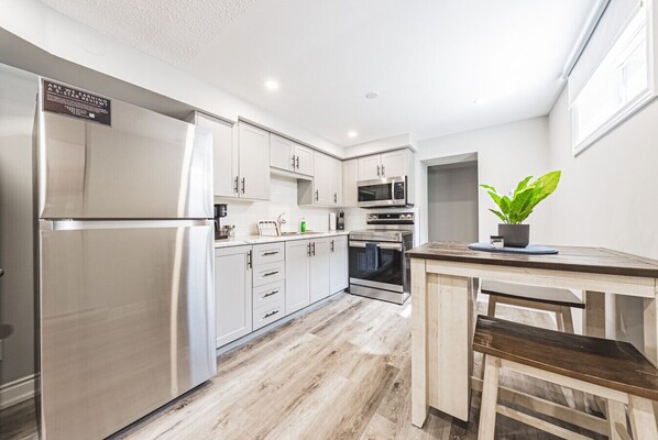 Access can be made by Hwy 403 (3 mins by car) or by the Burlington Go Station (2 mins by car/17 mins on foot). After arriving, take the back-door entrance with stairs down to the unit. Automated self-check-in is in place. Guests have access to all areas of this lower-level unit, plus two free parking spots onsite. Normally, paid parking in this area can cost $20/night.