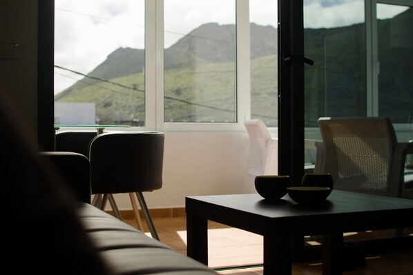 Situated in the rolling landscape of the northeast part of the island, apartment Ye is located in the town of the same name and promises a relaxing holiday experience in the midst of Lanzarote’s beautiful natural scenery. The tastefully-decorated apartment consists of a spacious living room with a sofa bed and an integrated, very well-equipped kitchen, a light-flooded winter garden furnished with dining and seating areas, 2 bedrooms as well as one bathroom and can therefore accommodate 6 people. Additional amenities include Wi-Fi, air conditioning, a washing machine and satellite and cable television in both bedrooms. Guests are invited to share fresh meals together or end their evenings with a glass of wine in the winter garden, where they have a panoramic view of the surrounding fields and the ocean in the distance. Apartment Ye is perfectly situated for excursions into Lanzarote’s stunning natural landscape: the popular beach Playa Del Risco, with its fine, golden sand, is a 7-minute drive or 2.9 km away while visitors will find a path leading to the volcano La Corona just a 5-minute walk from their front door and the cliffs of Mirador del Río are a 4-minute drive away. A wide selection of shops, restaurants, bars and cafes is just a 11-minute drive or 6,7 km from the property in the centre of Haría.