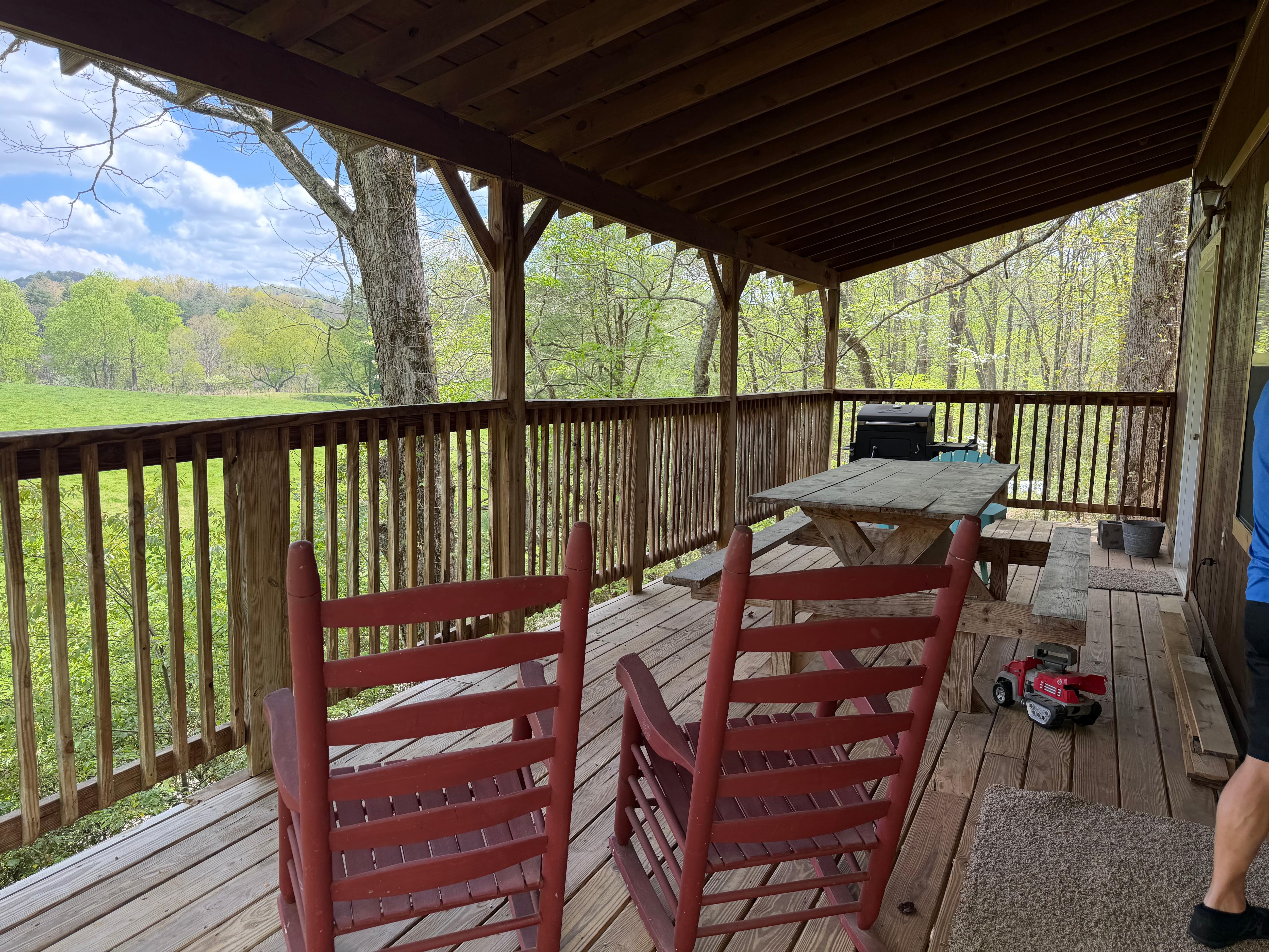Nyckelord: Stugan är fullt möblerad. Badrummet har jacuzzi och dusch. Tvättmaskin torktumlare. sängkläder, mikrovågsugn, pappersprodukter ingår. Lör T. V, D. V.D. Öppen spis. Queen size-säng och två enkelsängar. Drottning bäddsoffa. Stort däck med gungstolar. Grill- och eldgropar, picknickbord. Avskilt och privat i slutet av vägen. Allt du behöver eller vill ha!