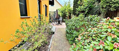 Badrummen har badkar eller dusch och hårtorkar. Denna lägenhet i Heringsdorf erbjuder sina gäster gratis wi-fi.