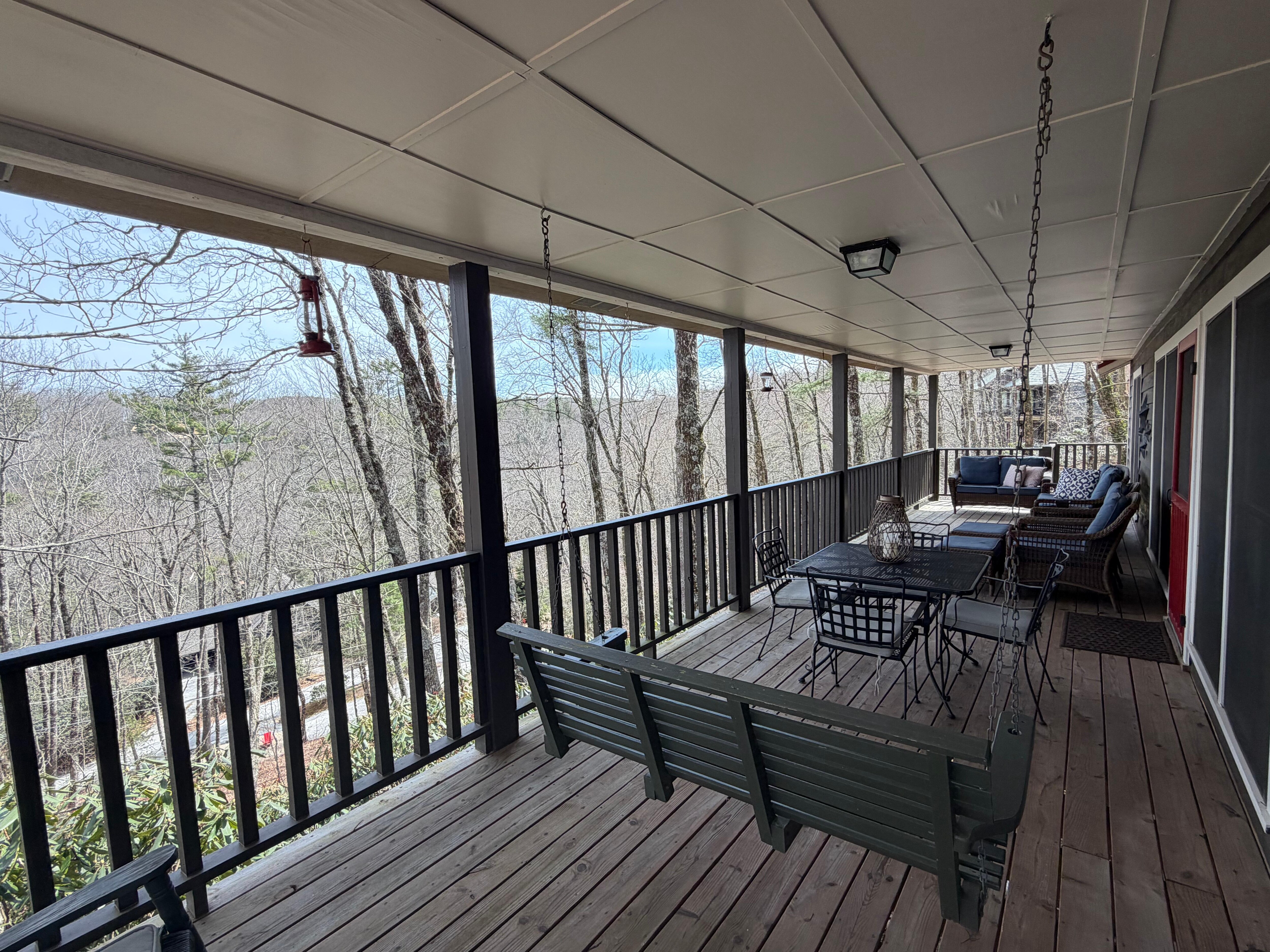 Ferncliff Cottage är verkligen den ultimata att föra utomhus i, träd och bergsutsikt från alla rum med en full längd täckt veranda. Ström direkt från Living-Kitchen-området på den överbyggda verandan och andas i frisk luft medan du sover på utomhus soffan, loveseat eller klubb stolar och ottomaner. Den täckta veranda har också en veranda swing, gungstol och matbord och stolar.