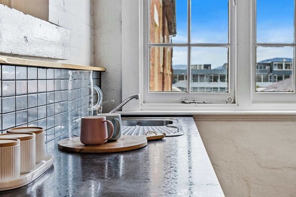 The highly rated Da Angelo Italian Ristorante is a three minute wander away (make sure you book in advance) and it’s only a six-minute walk to the Mona Ferry, Constitution Dock (of Sydney to Hobart fame) or the Hobart CBD with its galleries, landmark buildings and more food and wine options.